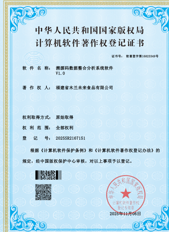 近日,福建省木兰未来食品有限公司自主研发的“溯源码数据整合分析系统软件V1.0”获国家计算机软件著作权登记。标志着企业在食品数字化溯源领域实现关键技术突破,为食品安全管控与消费体验升级注入强劲科技动能。 技术赋能,打造场景交互“数字载体” 作为该技术的首个落地应用场景,“御史清茶”茶包已全面嵌入该溯源系统,消费者无需繁琐操作,手机“碰一碰”即可解锁多维服务:既能追溯产品的流通全链条真实信息,筑牢食品安全防线;又能触发工艺视频、产品真伪查验等功能。这一创新让茶包从单纯消费品升级为“可交互、有温度、能传播”的文化载体,实现了科技与消费、文化的深度融合。 多维解码,构建食品信息“透明窗口” 响应“根据特定消费群体需求提供数字标签”的标准指引,聚以“产品溯源+数字标签”双轮驱动,破解传统食品信息传递壁垒,依托NFC技术实现食品信息的场景化、多维度呈现。消费者扫描产品标签二维码,即可一键获取从原料到终端的全流程信息,让食品信息传递突破“文字壁垒”,让每类产品的品质信息都清晰可感,为消费者筑牢食品安全知情权防线。 福建省木兰未来食品有限公司以该项目为起点,未来将持续聚焦数字标签、智能溯源、绿色生产等技术,深耕“科技赋能食品产业”赛道,通过技术迭代与场景拓展,逐步将数字化溯源方案推广至更多食品品类。在保障食品安全的同时,重塑消费者对食品品牌的信任逻辑,为食品行业数字化升级开辟新路径。