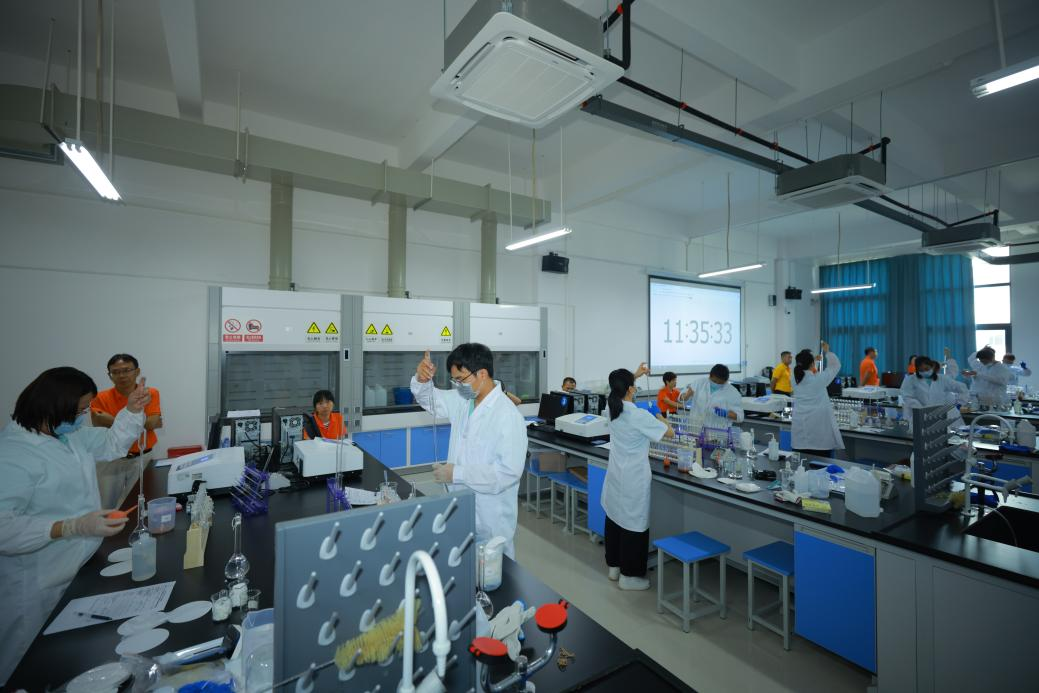 竞赛采用“理论+实操”双线考核模式,全面检验选手专业能力。9月18日下午,竞赛正式拉开帷幕。选手们沉着答题,凭借扎实的专业知识应对各类客观题型,展现出对供排水化学检验理论体系的熟练掌握。9月19日的实操考核成为赛事焦点。在实操实验室内,四组选手依次登场,围绕水质氨氮检测等核心技能展开比拼。从试剂精准配比、仪器规范操作到数据严谨记录,选手们动作娴熟、流程规范,充分展现了日常岗位训练的扎实功底。现场评委团队由行业专家与高校教师组成,严格按照考核标准对操作步骤、实验结果进行打分,确保竞赛公平性与专业性。
