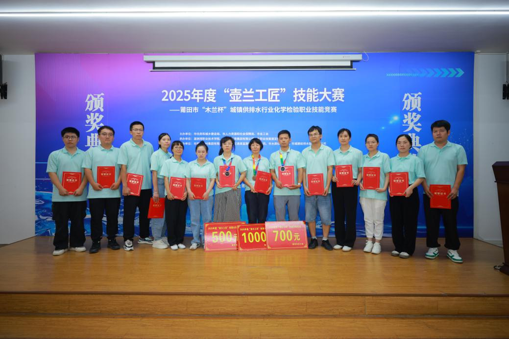 颁奖现场,个人一等奖获得者高美香难掩激动:“这份荣誉不仅是对我个人技能的认可,更让我真切感受到供排水检测行业的人才价值!”。此外,来自市木兰投资集团的团体一等奖获奖团队代表则聚焦民生责任:“供排水检测关乎千万家庭的用水安全,我们会把竞赛中练就的精准操作、严谨作风融入日常工作,全力守护莆田居民‘水龙头里的安心’,确保城镇污水处理达标排放。”